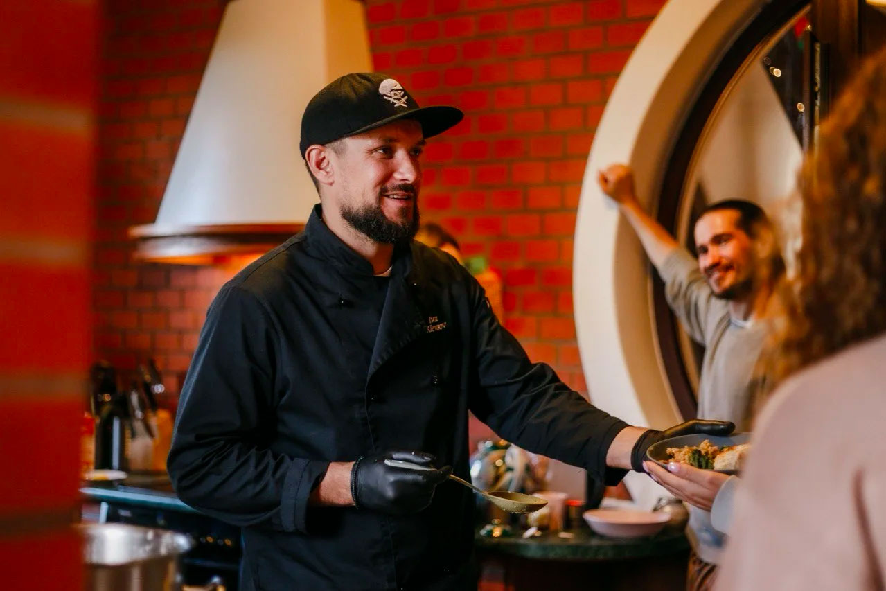 На ретрите с нами работают высокопрофессиональные повара, которые кормят нас вкусно и разнообразно 4 раза в день.